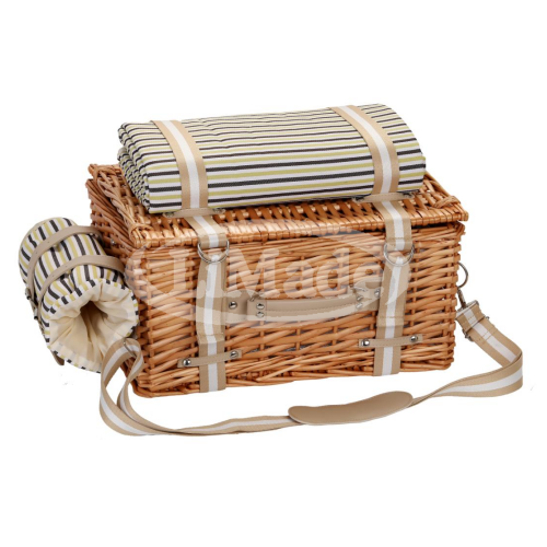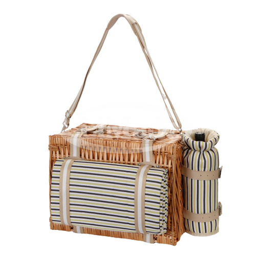 LiMade Marble 4 Person Square Picnic Basket Natural Wicker Basket Set with Shoulder Carry Strap