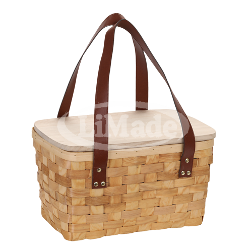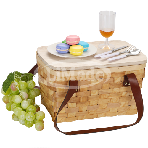 LiMade Outdoor 2 Person Square Picnic Basket Natural Woodchip Basket Set